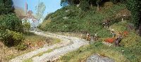 Am Gleisanschluß befindet sich ein Kalkbrennofen. Oben werden die Kalksteine per Feldbahn angeliefert. Der fertige Kalk soll dann in Säcken und Fässern auf die Bahn verladen werden.
