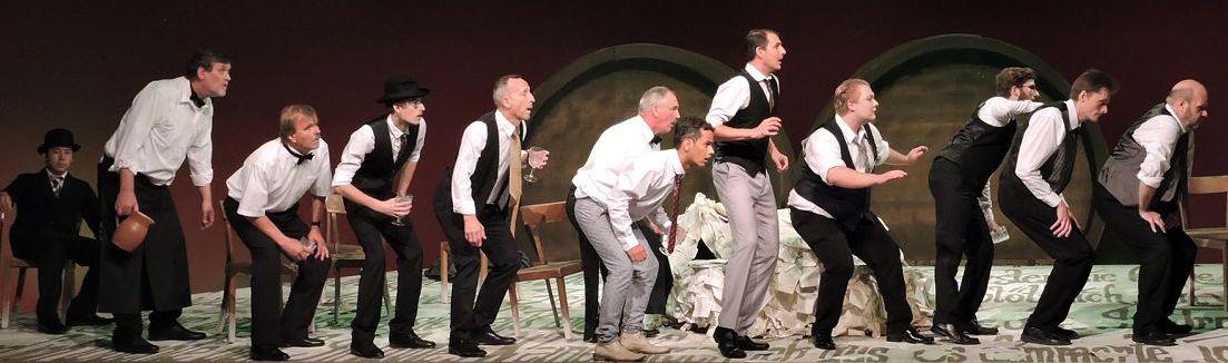 Als Hoffmann mit dem Klein-Zach begann, stieg ein Zwerg, dargestellt von einem Kind, aus dem Stapel der Manuskripte. Als er zu Stella überging, kletterten drei Grazien aus den Manuskripten. Für den Klein-Zach gab es Applaus. Regie und Dramaturgie hatten das Vorspiel in Lutters Wirtshaus (im Spessart) klug auf 30 Minuten gekürzt und nur die wichtigen Passagen behalten. Für den ersten Akt gab es ermunternden Applaus. Das Publikum war offensichtlich angetan. Es folgte eine längere stumme Umbaupause. Da böte es sich doch an, dass man das Orchester eine der zahlreichen Melodien spielen lässt, die man streichen muss, um aus der Oper eine spielbare Länge zu kondensieren. Die Musiker im Orchester hätten dann zwar etwas mehr zu tun, aber das schaffen die schon. Jacques Offenbach ist nicht so anstrengend wie Richard Wagner und dauert auch nicht so lange. |