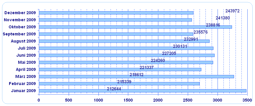 | pro Monat | 4157 | 21935 | Oktober 2007 | 3932 | 3794 | 5439 | 11627 | Januar 2009 |